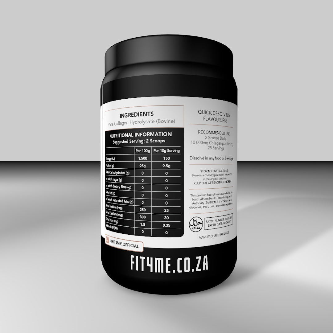 FIT4ME Collagen is formulated with Collagen Hydrolysate, which is metabolized into collagen peptides that are easily absorbed by the digestive system. This not only boosts your body’s collagen levels but also stimulates natural collagen production, promoting healthier, more youthful-looking skin, stronger hair and nails, and improved joint and muscle health.
